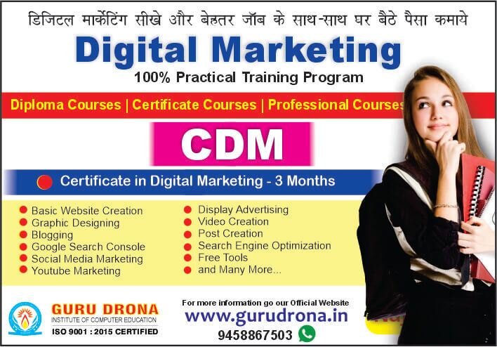 इन कोर्स को पूरा करने के बाद आप निम्न में से किसी भी जॉब के लिए आवेदन कर सकते हैं। जैसे कि Website Designer , Digital Marketing Manager , SEO Executive , Google Ads Creator , SMM Executive , Youtube & Blogging.